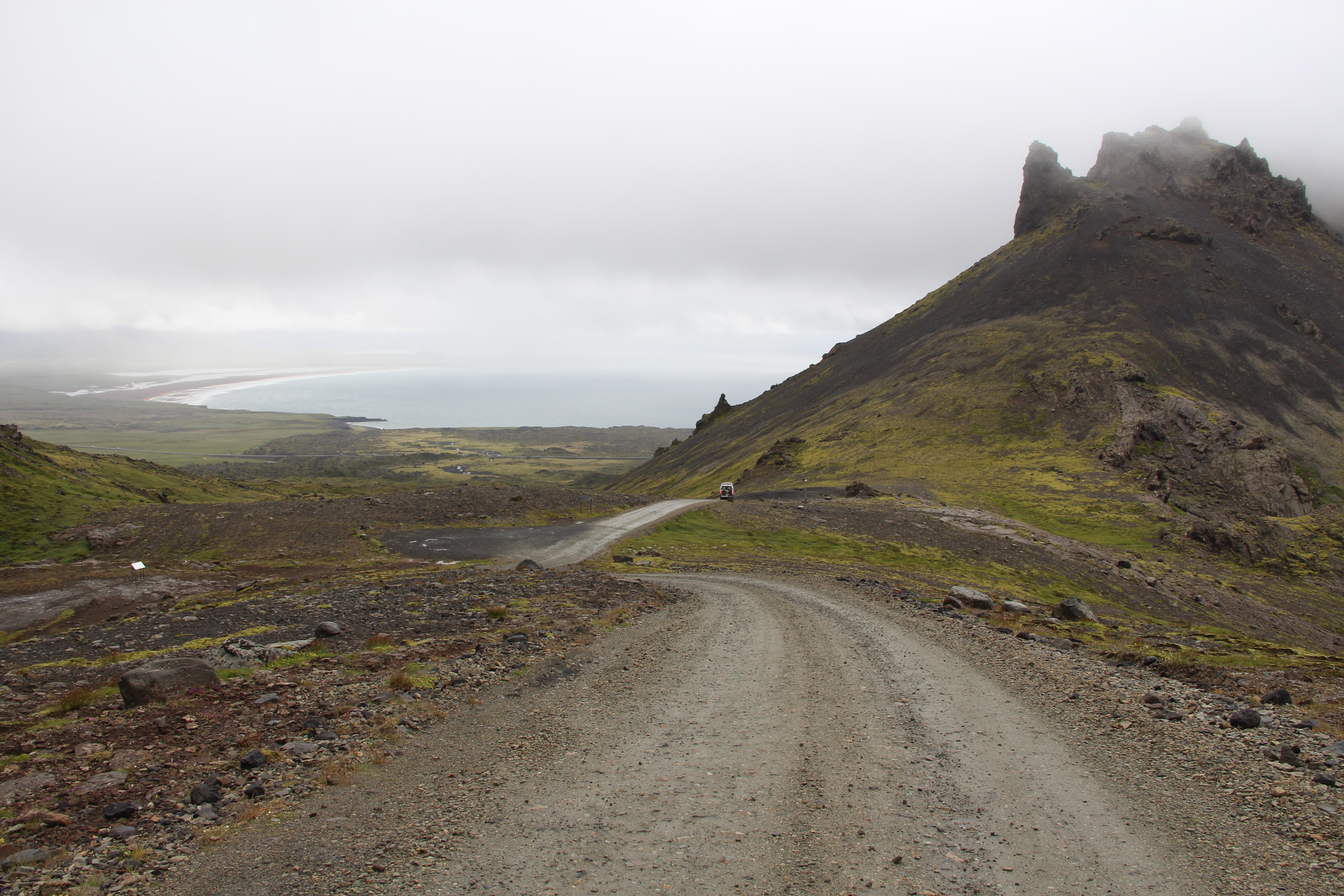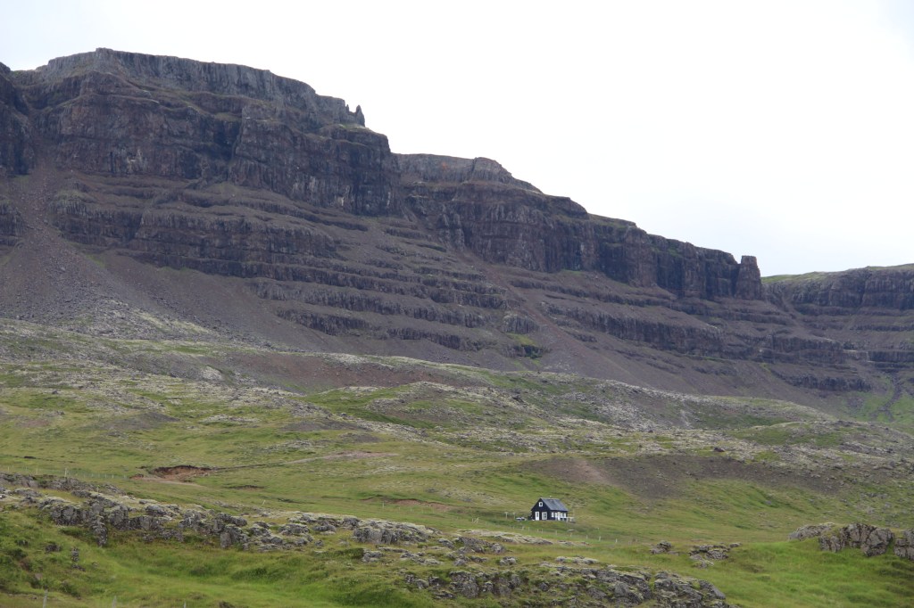Lasciare Reykjavik in auto è impresa molto difficile, non trovo indicazioni, mi faccio condurre dal mio senso d’orientamento ma a volte non basta. Una volta uscito dalla città però tutto cambia. Costeggio il mare fino ad imboccare il tunnel che attraversa lo Hvalfjordur, 6 km sotto l’acqua del fiordo in tutta sicurezza. Sosta per il pranzo ad Akranes, una zuppa di pesce “organica” molto speziata, accompagnata solo da acqua. Se si guida non si beve! Superata Borgarners imbocco la strada che porta verso Nord. Sosta in prossimità di un vulcano spento. Attraverso vallate verdi, qualche fattoria isolata, pecore che pascolano e qualche cavallo. Svolto a sinistra in direzione della penisola. La strada si fa sterrata, terra e sassi per tutti i 70 km da percorrere. Costeggio il mare, grigio, come grigio è il cielo. Cade un leggera pioggerellina. Supero un fiordo con una cascata sul fondo per arrivare a Stykkisholmur dove pernotto. Un piccolo borgo affacciato ad un porticciolo racchiuso da una grande roccia di basalto. Poche abitazioni bianche, verdi o rosse, ed una chiesetta in legno di colore grigio. Mi sistemo in un albergo. Lo stabile, in legno rosso è in stile tradizionale. Anche l’interno lo è, caldo, accogliente, tutto pulitissimo, molto cordiale l’accoglienza. Mi viene assegnata una camera singola, di piccole dimensioni, mansardata, con una piccola finestra che si affaccia al mare. Per la cena mi devo rivolgere all’unico locale del paese dove trovo un ambiente umano molto gradevole grazie agli scambi con turisti italiani e stranieri. La mattina, pima di partire, vado a visitare la Norska hùsid, una casa famigliare eretta nel 1832 da un ricco commerciante. La struttura ospita il Museo Regionale che accoglie una interessante raccolta di antiquariato locale. Al piano superiore si può visitare la residenza signorile arredata con mobili e attrezzature originali. Riprendo la strada in direzione Ovest, sempre lungo la penisola. Cielo grigio e pioggerellina. Si incontrano pecore bianche e nere, piccole stalle bianche col tetto rosso. Il cielo si fa sempre più carico di nubi scure. Incrocio una grande cascata di acqua spumeggiante che grazie a diversi salti scende la verde collina. Da quella posizione si può vedere distintamente la sagoma piramidale del vulcano avvolta dal grigiore del cielo. Isolata, sferzata dal vento, appare una chiesetta in legno, bianca col tetto rosso. Sul fianco un piccolo cimitero con croci bianche e pietre nere. Un tratto di asfalto ed ecco una strana segnalazione: “guidare con attenzione, uccelli sulla strada”. In effetti per qualche centinaia di metri decine di uccelli volano in ogni direzione rappresentando un forte pericolo per se stessi ma anche per gli automobilisti. Il pericolo viene segnalato con scritte sull’asfalto, cartelli gialli e luci rosse lampeggianti. A quanto pare ogni anno decine di uccelli vengono investiti dalle auto. Il motivo è molto semplice: questi uccelli si nutrono di pesci e quindi volano radenti sui fiumi. Il punto è che questi stormi confondono la strada con un ruscello e così capita che vengono travolti. Superato Hellissandur mi porto verso il capo della penisola fino a Ondeverdames. Rocce nere alternate a spiaggette scure sferzate dal vento e dalla pioggia gelida. Rientro a Olafsvikun piccolo borgo distribuito lungo il litorale. Per il pernottamento c’è un ostello ben organizzato, pulito e ben frequentato. Per cena sono al Hraun, fronte porto, l’unico ristorante del villaggio. Una bella struttura in legno con un buon servizio e un ottimo menù. Scelgo un piatto a base di salmone gratinato accompagnato da patate, insalata, broccoli, fragole e diverse salse. Davvero di ottimo gusto. E per concludere, dopo il vento e la pioggia, verso le 11 di sera appare il cielo azzurro e un bellissimo arcobaleno. Speriamo che possa essere un buon augurio per la giornata di domani. La mattina riparto con l’intenzione di attraversare la Penisola che include il famoso vulcano Snaefellsjokull, il ghiacciaio, campi e tunnel di lava. Il vulcano è di per se una meraviglia naturalistica ma è anche stato reso famoso da Giulio Verne nel suo libro “Viaggio al centro della terra”. L’autore immagina che i ricercatori, partiti da Reykjavik, si infileranno proprio in questo vulcano con l’intento di raggiungere il centro della terra. Dopo tante vicissitudini i ricercatori potranno rivedere la luce tornando alla superfice a Stromboli. Straordinaria la fantasia di Verne. Appena si esce dal villaggio la strada offre un tracciato acciottolato che si inerpica attraversando prati brulli e lungo torrenti che formano cascate di acqua gelida. Il cielo è sempre completamente coperto, pioggia leggera e di tanto in tanto appare qualche arcobaleno. Incontro una coppia di italiani bloccati a causa dei freni non funzionanti, cerco di dar loro una mano ma l’unica possibilità è rientrare al villaggio. Io proseguo e incontro le prime chiazze di neve, il colore del fondo della strada cambia da rossiccia a nera, ai lati rocce di lava raffreddata in modo rapido e casuale. Raggiungo il passo ma il cielo è completamente coperto da nubi, il panorama praticamente azzerato. Faccio una sosta, mi guardo in giro ma è praticamente impossibile imboccare un sentiero. E così decido di scendere verso la costa fino ad Arnarstapi, un piccolo villaggio dove in un bar bevo un buon caffè che mi riscalda. Un grande e tozzo monumento in pietre scure rappresenta un omaggio a Jules Vernes, Passeggio lungo la costa. Rocce scure che delimitano il mare con la superfice superiore ricoperta da erba verdissima. Sulle rocce, di fronte al mare, centinaia di gabbiani volano e si riposano. Il vento trasporta acqua ghiacciata che sbatte sulla pelle del mio viso. E qui decido che forse è arrivato il momento di prendere la decisione di rientrare. Proseguo fino al porto protetto da imponenti muraglioni di pietre. L’entroterra è coperto da prati, piccoli stagni o lagh